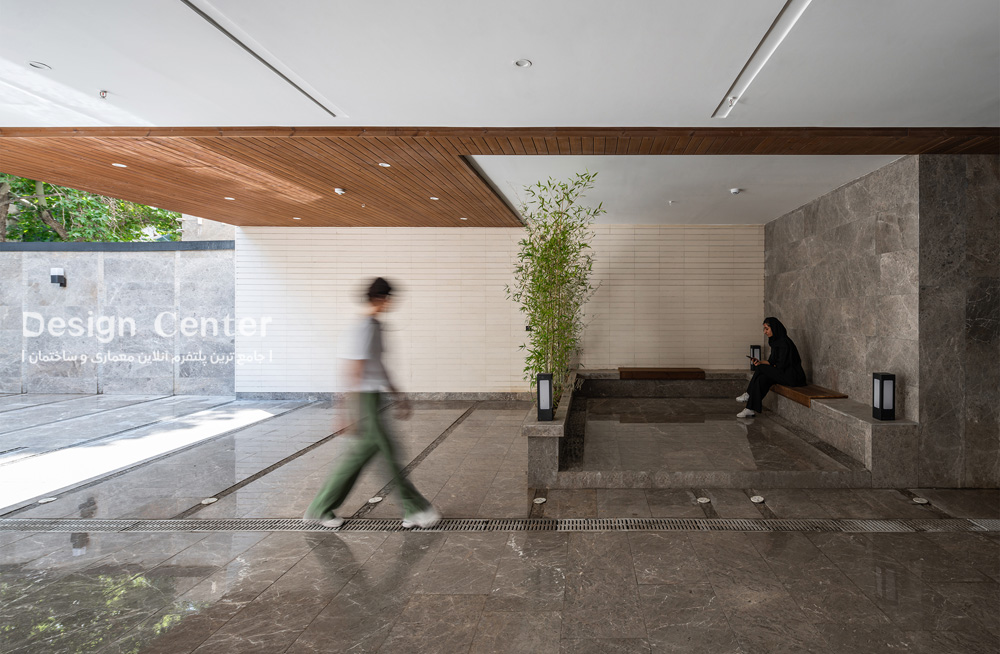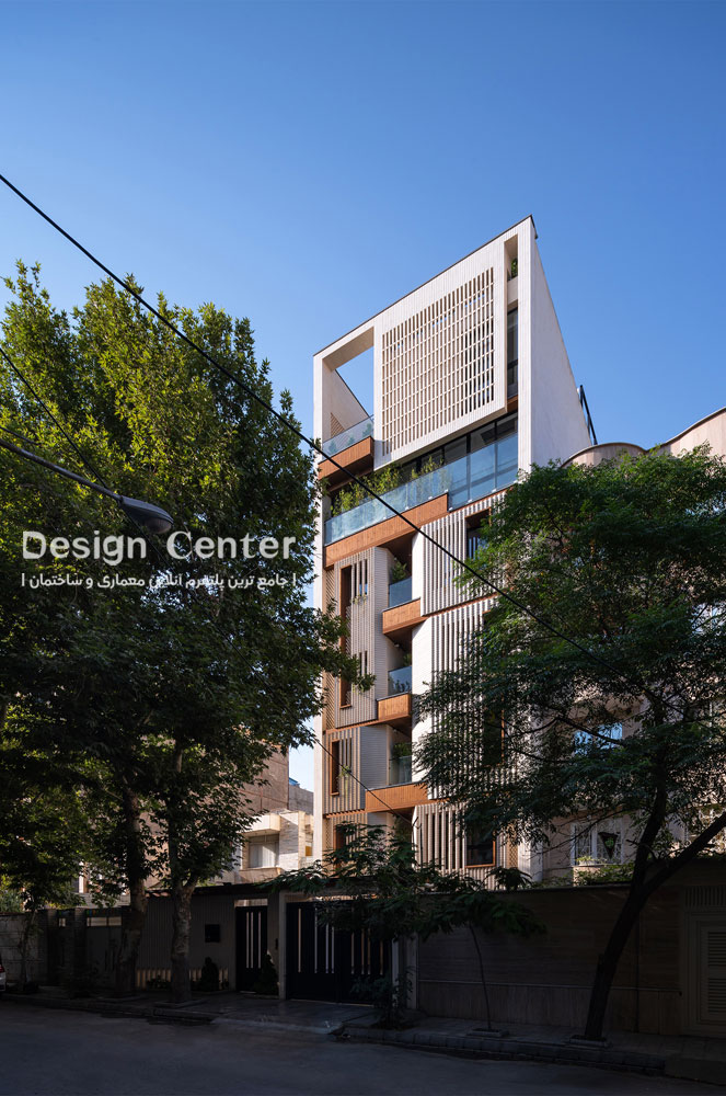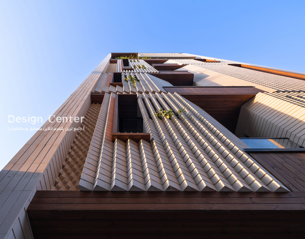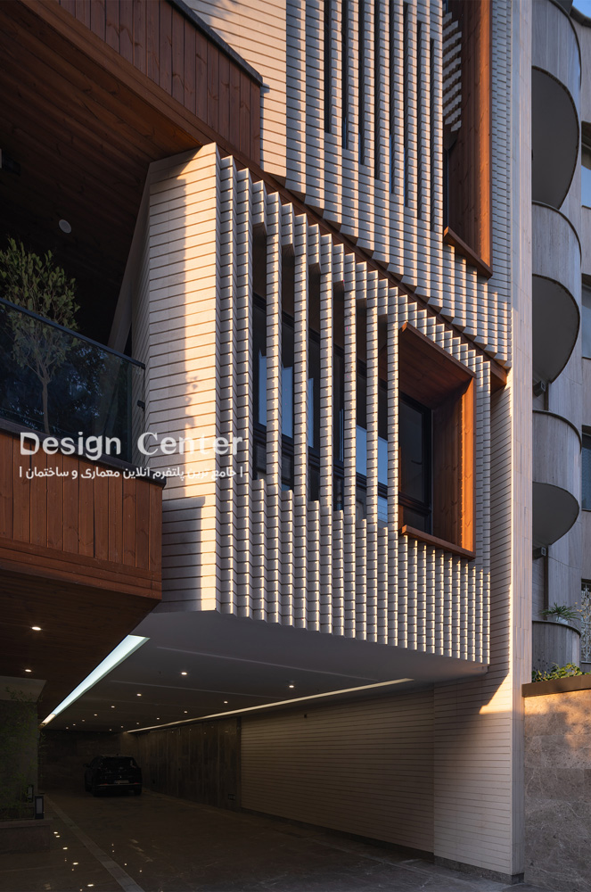 برای کاهش آشفتگی بصری ناشی از ساختمان‌های اطراف، نمای پروژه با استفاده از آجر سفید، و بر پایه ایجاد قابی ساده و زیبا شکل گرفته است که بنا را از همسایگان ناهماهنگ و در حال نوسازی جدا می‌کند و فضایی مناسب برای چینش عناصر معماری فراهم می‌سازد. پوسته‌های آجری برگ‌مانند نما که با چرخش و زاویه‌گیری قطعات آجر شکل گرفته‌اند، نفوذپذیری متنوعی به حجم بیرونی می‌دهند، و با ایجاد روزنه‌هایی، کنترل دید از بیرون به داخل را ممکن می‌سازند. همچنین بازی نور و سایه روی سطوح مایل آجری، جلوه‌ای پویا در نما ایجاد می‌کند که تا عمق فضا امتداد می‌یابد. این شیوه از طراحی، نمایی سه‌بعدی پدید می‌آورد که علاوه بر مدیریت تابش آفتاب، تمرکز دید را از روبه‌رو به جهات شرقی و غربی تغییر می‌دهد و تجربه‌های بصری منحصربه‌فردی را در داخل و خارج بنا برای کاربران به ارمغان می‌آورد.
