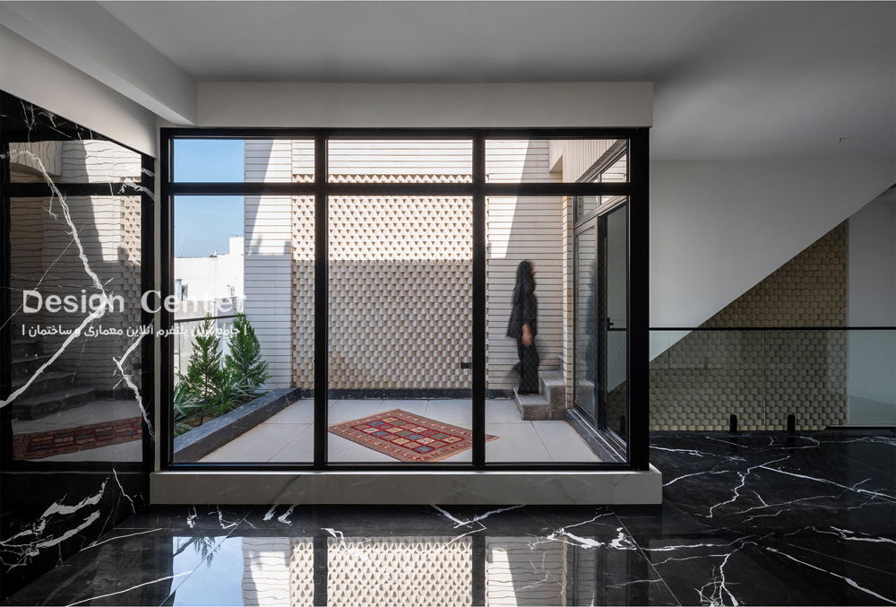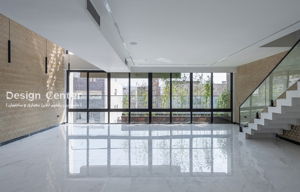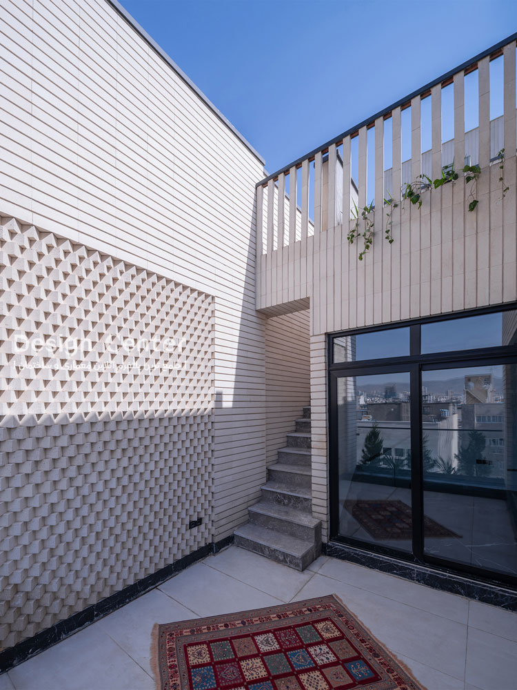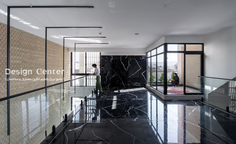 خانه کارفرما در طبقات پنج و شش، در قالب یک واحد دوبلکس طراحی شده است. لایه اول این خانه به فضای نشیمن و پذیرایی مهمان اختصاص یافته که به دلیل نبود اشراف ساختمان‌های روبه‌رو، جداره‌ آن کاملا شفاف در نظر گرفته شده است. در مقابل این جداره، باغچه‌ای سرتاسری قرار دارد که با ایجاد پرده‌ای سبز، منظره بام ساختمان مقابل را می‌پوشاند. لایه دوم خانه نیز شامل اتاق‌ها، نشیمن و حیاط سرگشاده‌ای در جداره جنوبی است که به درختان کهن‌سال چنار مشرف است. این نشیمن، مشابه ایوان‌های خانه‌های سنتی، امکان اتصال مستقیم به حیاط سرگشاده را داراست و به وید اصلی، و از طریق آن به پذیرایی نیز اشراف دارد. حیاط سرگشاده نیز از طریق یک پله روباز، به لایه سوم که بخشی از بام ساختمان است، متصل می‌شود. این بام فضایی مناسب برای بازی کودکان، دورهمی‌های خانوادگی، و سپری‌کردن لحظاتی دلنشین در شب را فراهم می‌کند.